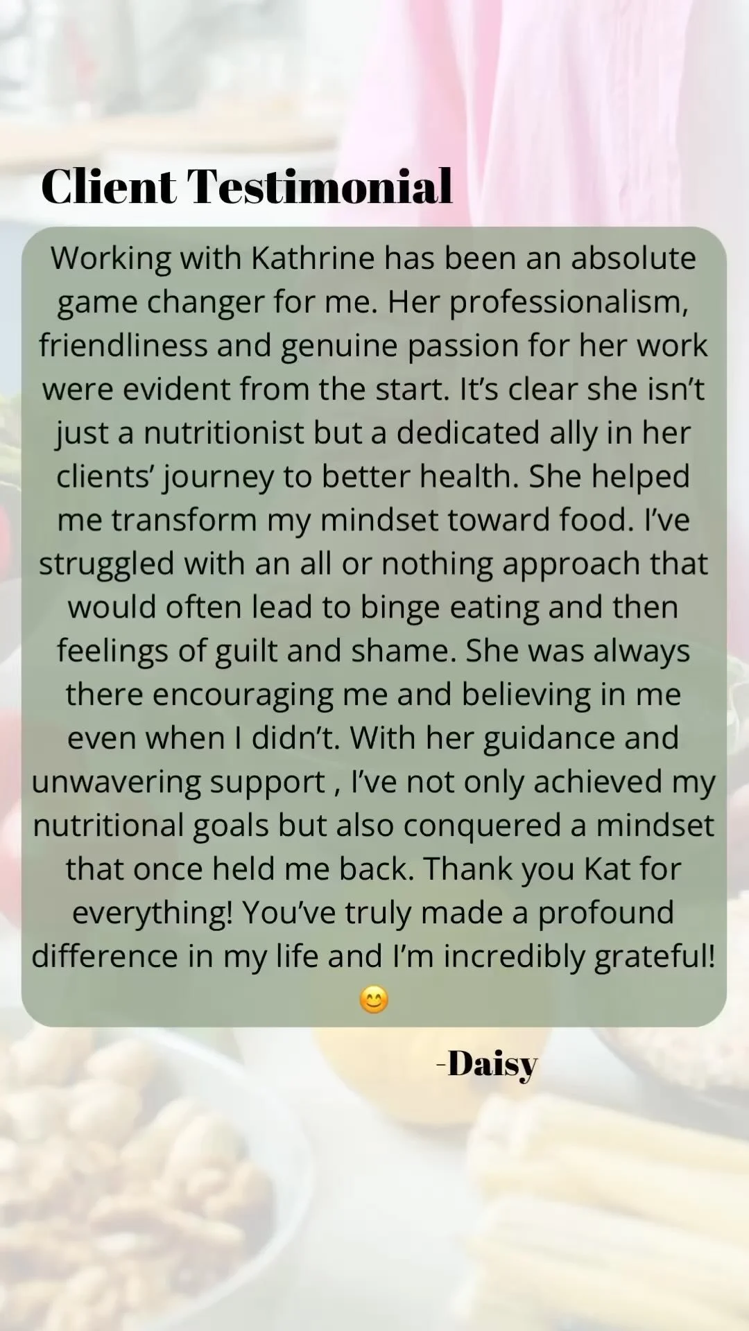 This is what I’m really passionate about: helping people untangle their stress, anxiety and fear around food, body and wellness - and creating confident, sustainable health habits and mindset around wellness.